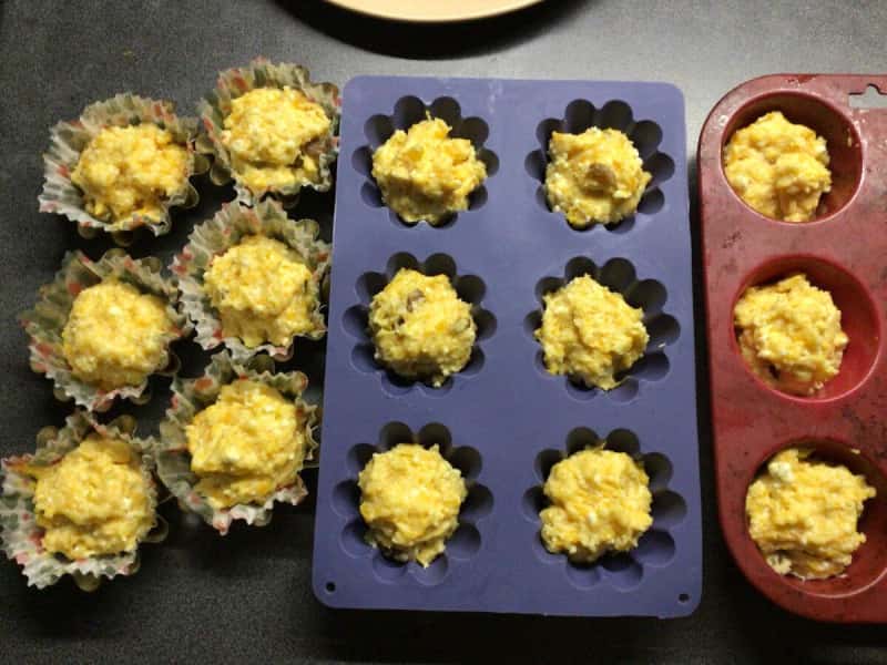 Далі перекладаємо тісто в формочки. Заповнюємо формочки тістом на 2/3 від обсягу форми. У мене, з даного тіста вийшло 18 кексів.