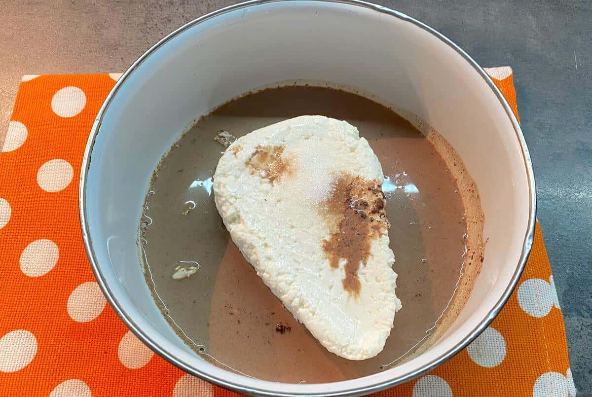 Для початку влийте молоко в миску, додайте гіркий шоколад і розтопіть в мікрохвильовці, або прогрійте в сотейнику до розчинення шоколаду, повністю остудити.