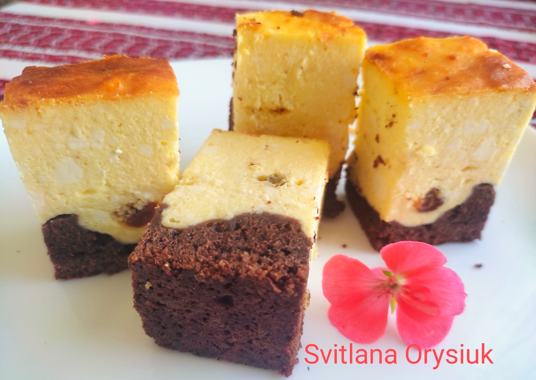 Все збити блендером до однорідності. За бажанням додати сухофрукти, в мене родзинки.Пекти при 180″ приблизно 1 год.Після охолодження можна полити шоколадом .