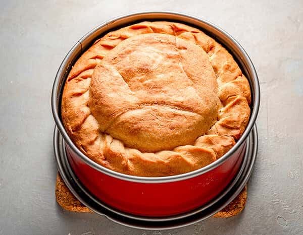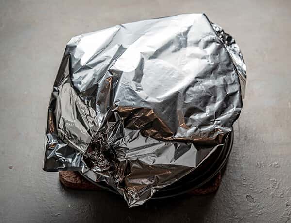 Зменшіть температуру в духовці до 150 C і випікайте 3-3,5 години. Приблизно за 10 хвилин до готовності зніміть фольгу і дайте верху пирога підрум’янитися.