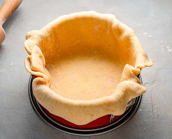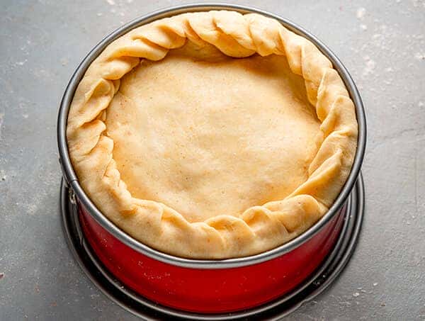 Помістіть пласт тіста в форму. Форму з антипригарним покриттям я не змащувала, але можна змастити маслом чи олією. Боки тіста повинні нависати над краями.