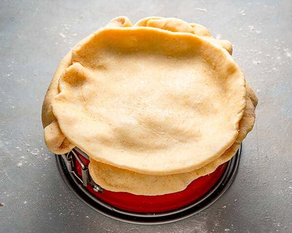 І накрийте меншим шаром тіста пиріг поверх начинки.