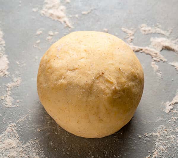 Покладіть тісто на злегка посипаний борошном стіл. Сформуйте з нього кулю і залиште на 20 хвилин в поліетиленовій плівці.