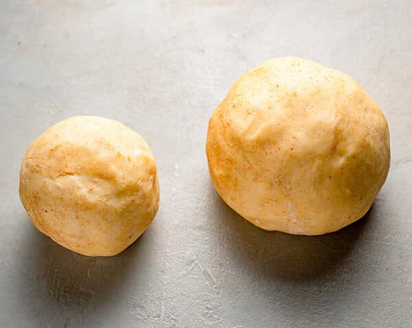 Розділіть кулю з тіста на 2 нерівні частини.