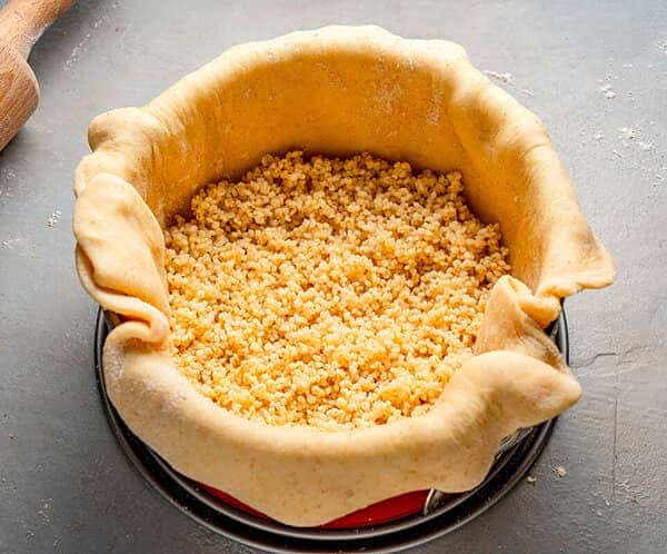 Викладіть на тісто підготовлену пшоно.