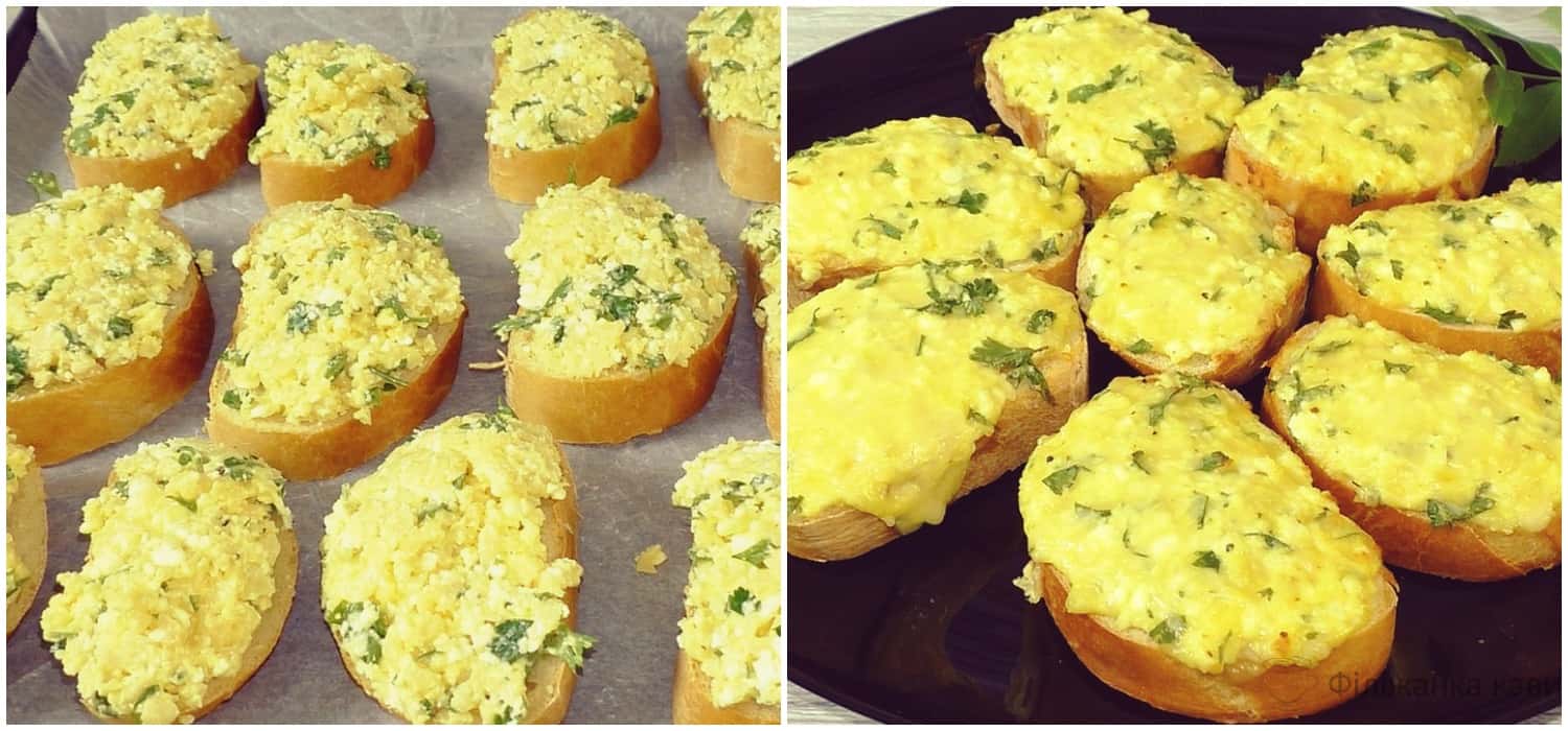 Відправляємо бутерброди в заздалегідь прогріту до 180 градусів духовку на 10 хвилин.
