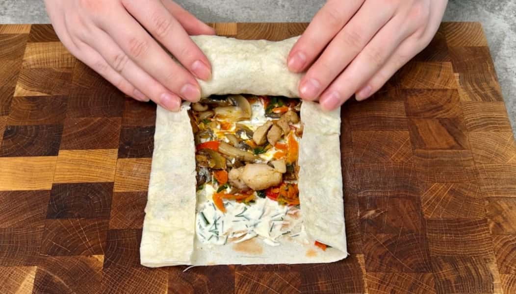 Лаваш є універсальним продуктом із тіста. У цей тонкий корж можна загорнути багато продуктів, овочів і м’яса наприклад. При цьому, якщо додати соус, то вийде смачна страва.