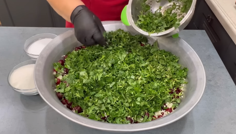 і чисту і нарізану зелень, додати сушену м’яту, сіль, цукор,
