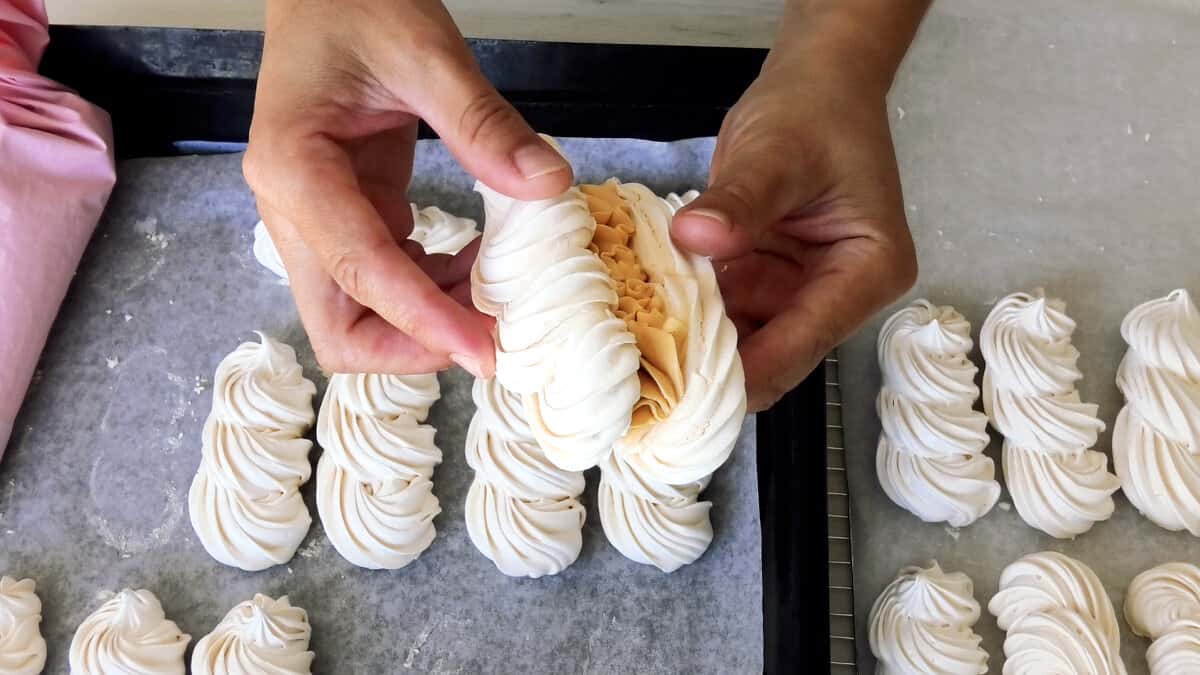 Готове безе сухе, добре відстає від пергаменту.