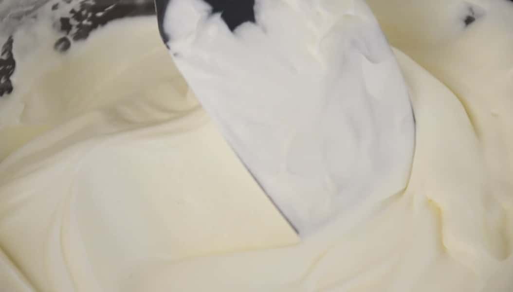 А в окремій ємності збиваємо 130 гр. жирних холодних вершків, їхня жирність повинна бути не менше 33%. Збиваємо їх на середній швидкості, щоб краще контролювати їхню густоту, а то вершки можна дуже легко перевзбити, після чого вони розшаруються. Тому обережніше.