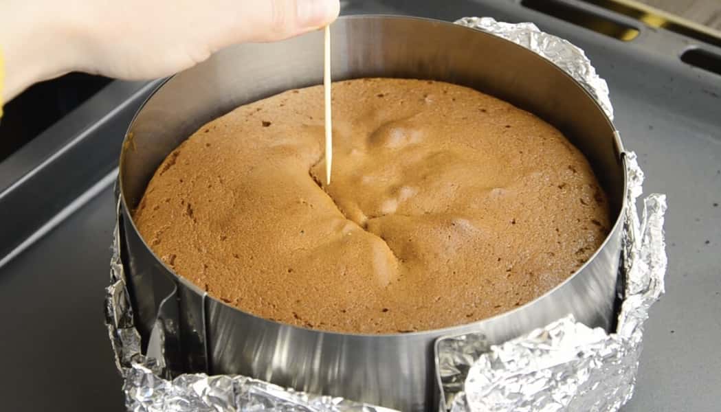 Готовність обов’язково перевіряйте дерев’яною паличкою. Якщо виходить суха, значить бісквіт готовий.