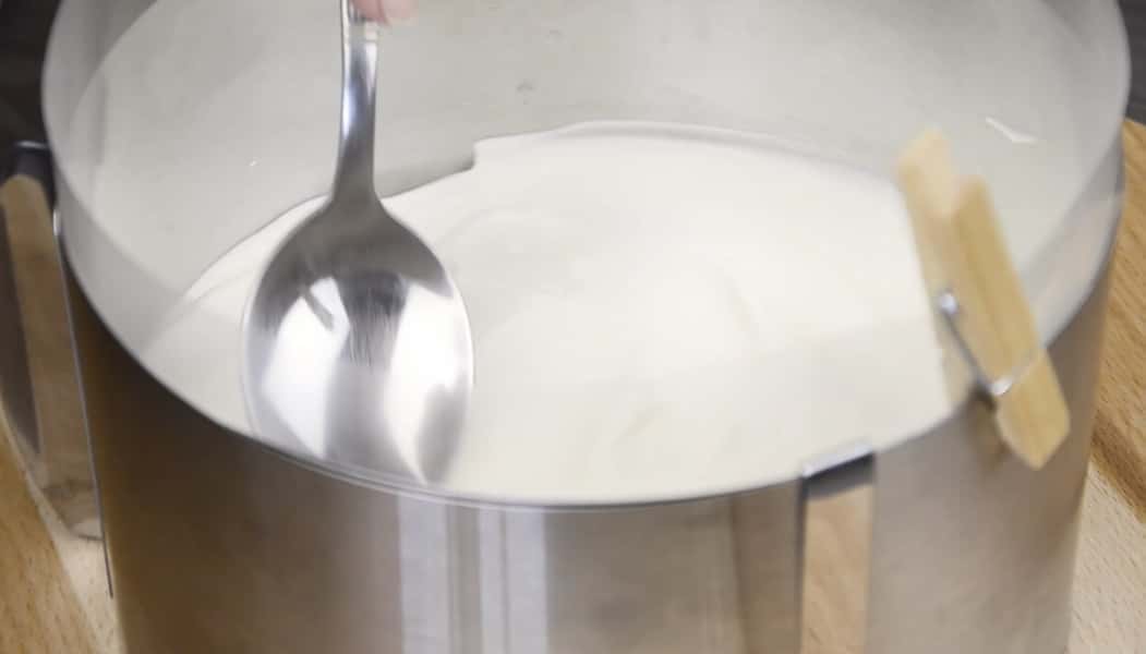 Забираємо його на середній вогонь і постійно помішуючи, чекаємо, щоб мед розтанув, посвітлів і спінився. Кип’ятити його не потрібно, коли пішла піна відразу можна прибирати каструлю з вогню і дати йому охолонути.