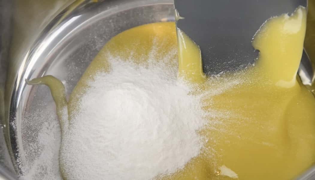 Насамперед потрібно підготувати мед. Для цього в зручну каструлю або сотейник кладемо 170 гр. меду та додаємо до нього 2 ч. л. розпушувача.