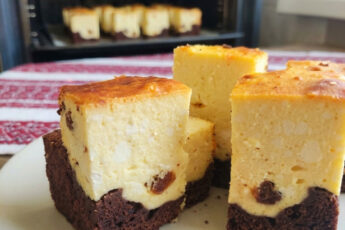 🍰Перекладаємо тісто у форму та відправляємо в духовку. Випікаємо при 170 г 45 хвилин. Готовий бісквіт остуджуємо, замотуємо в плівку і забираємо в холодильник на кілька годин. Потім розрізаємо на 3 коржі.