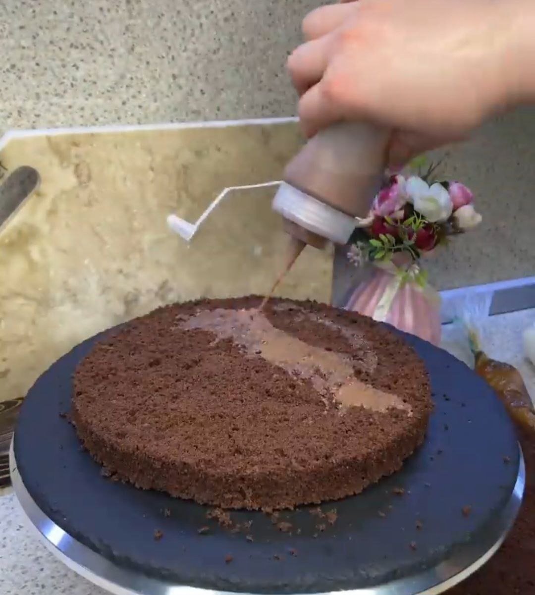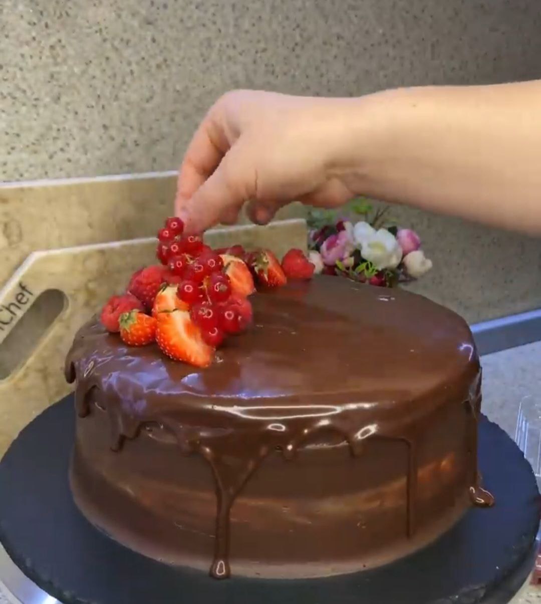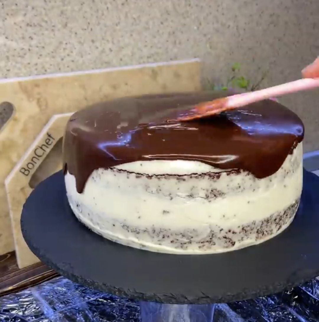 Працюємо з ганашем після того, як він охолоне повністю, поливаємо торт.