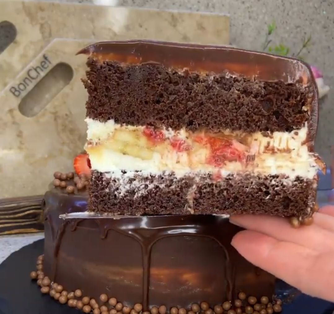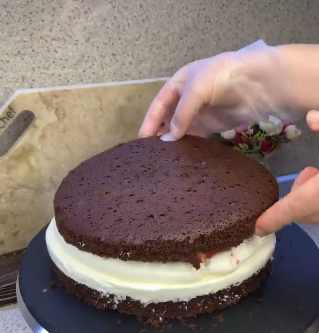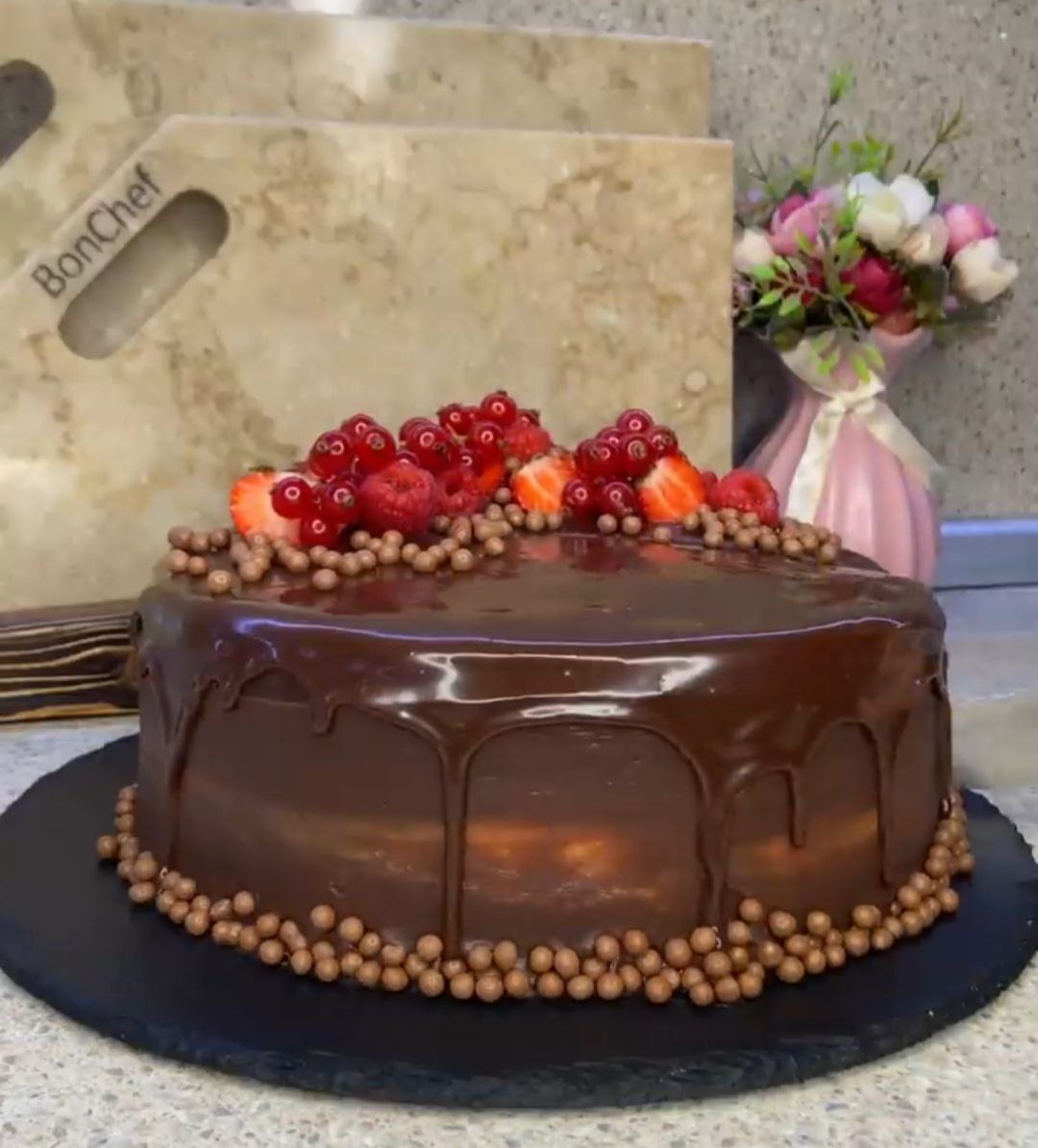 Працюємо з ганашем після того, як він охолоне повністю, поливаємо торт.