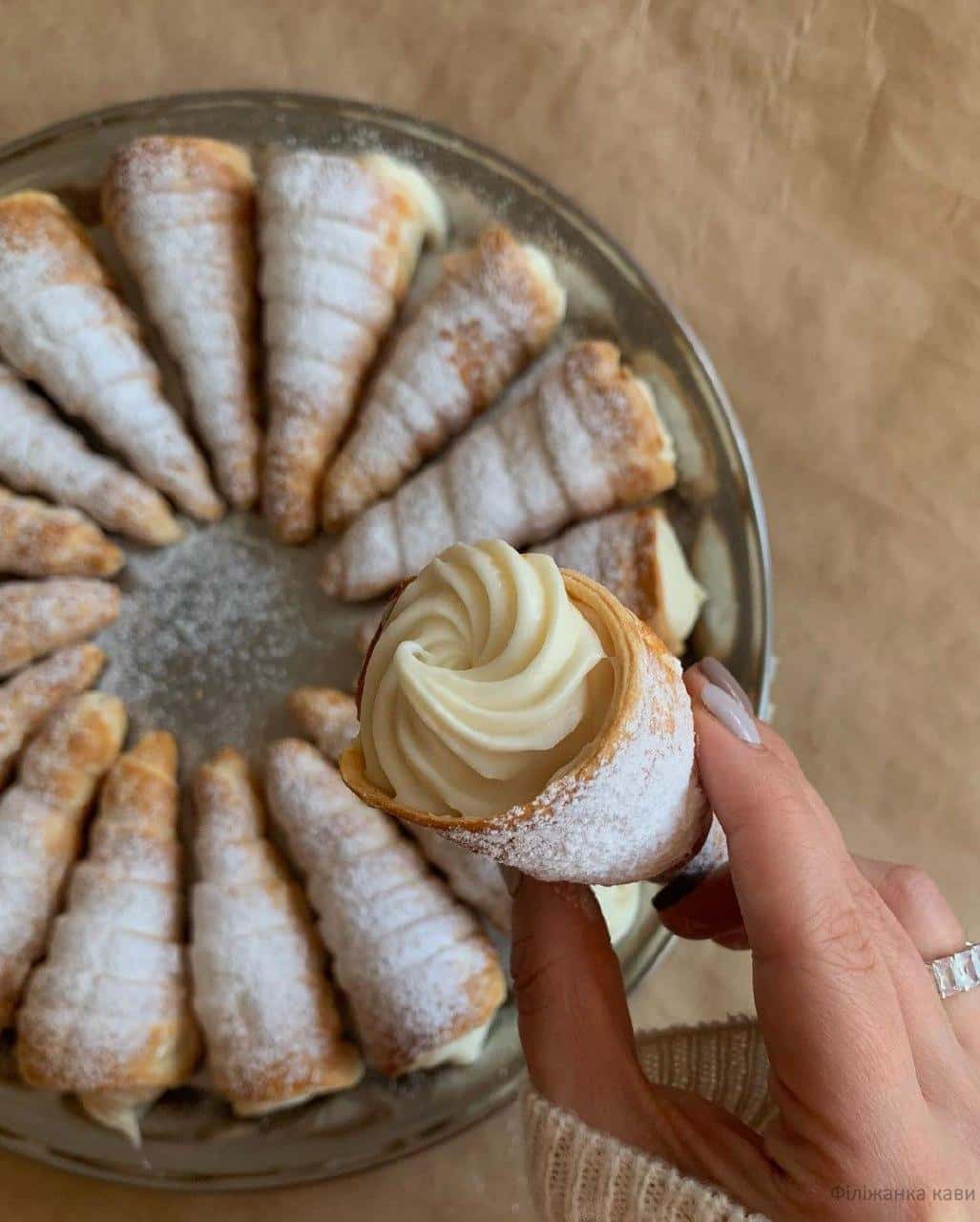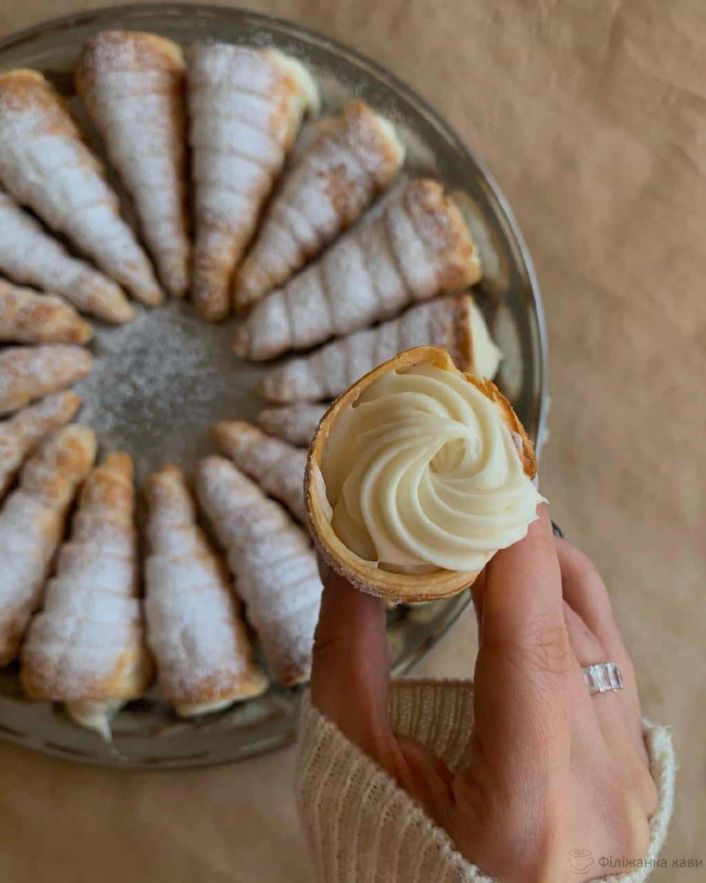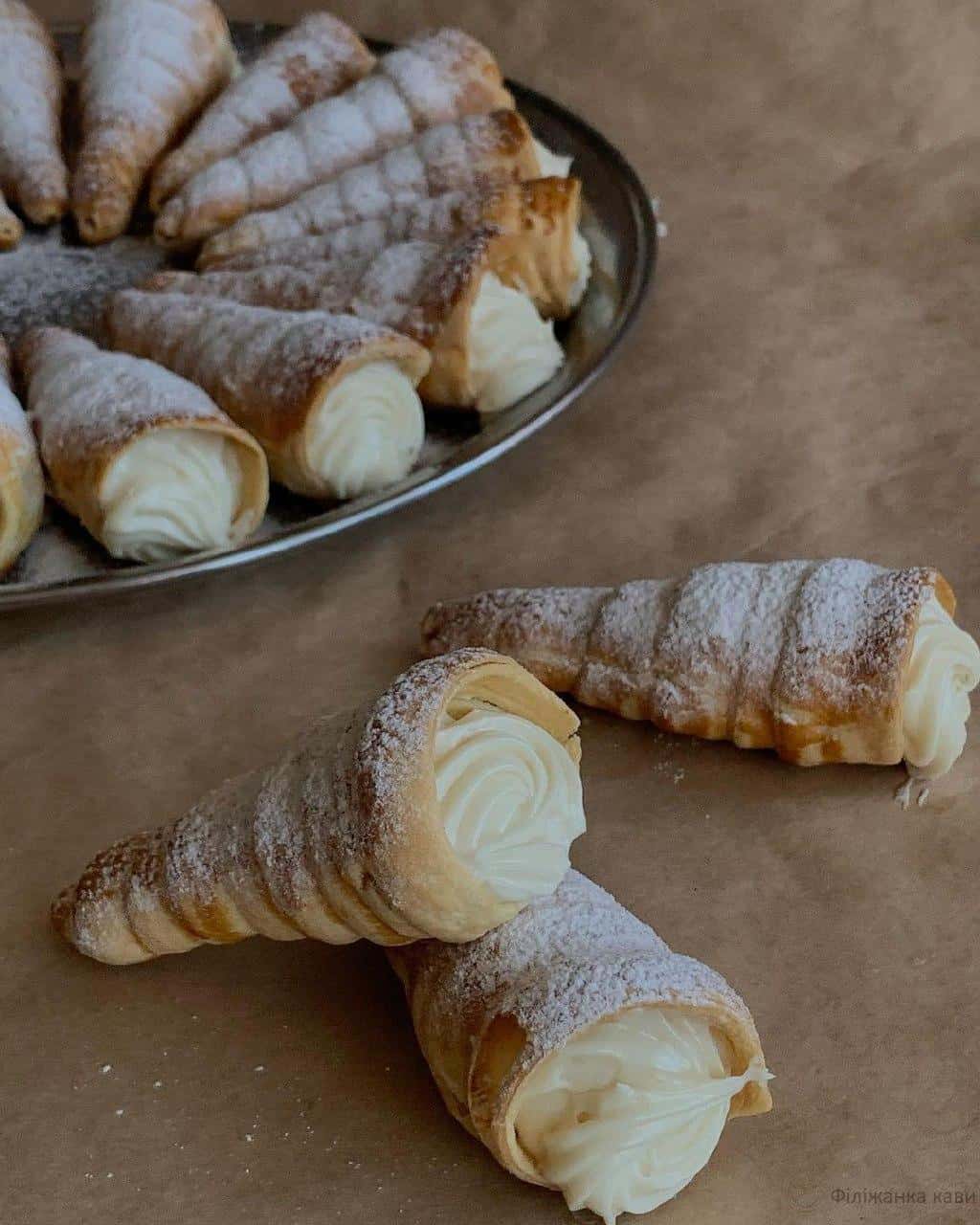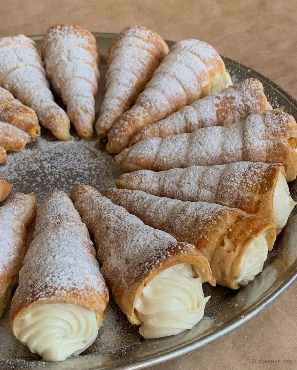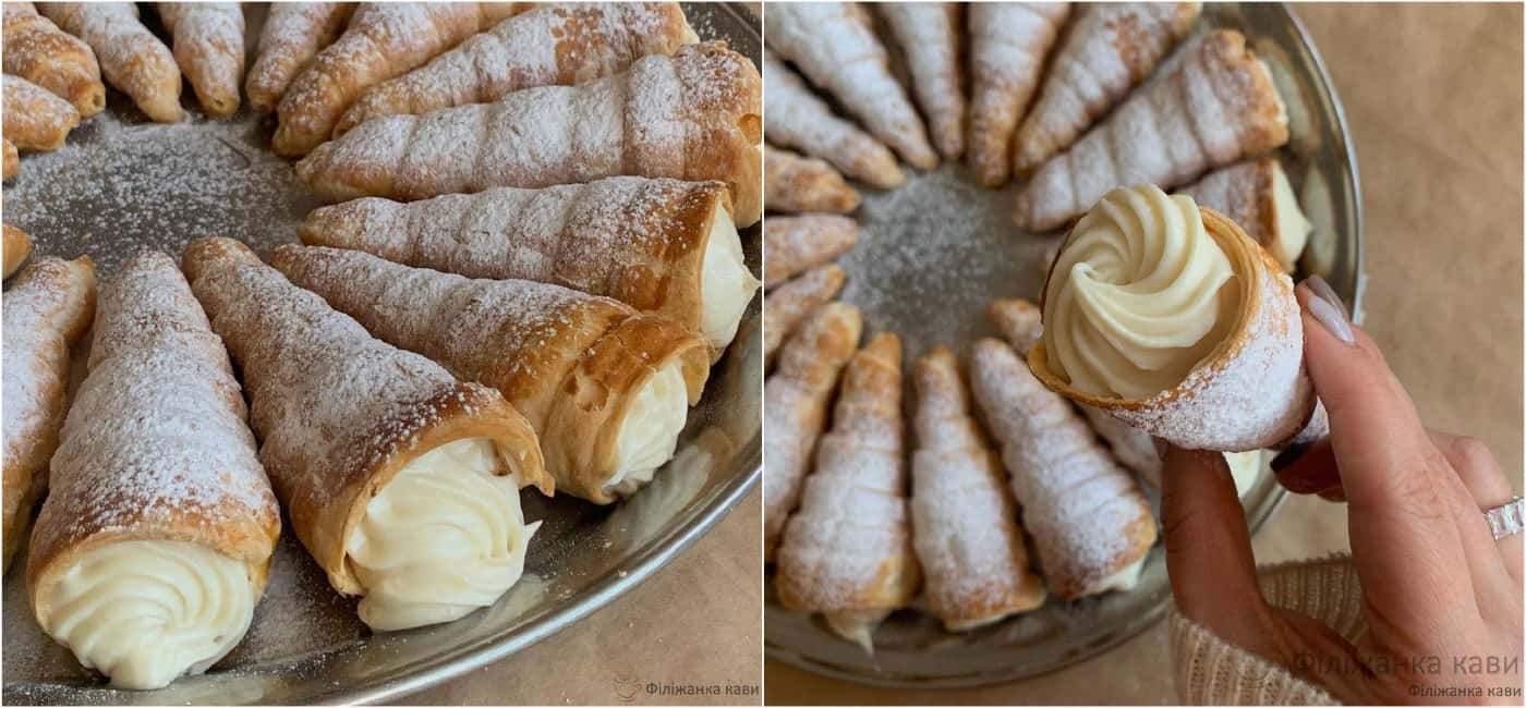 Начиняємо трубочки кремом за допомогою кондитерського шприца або ложки та присипаємо цукровою пудрою 🤍