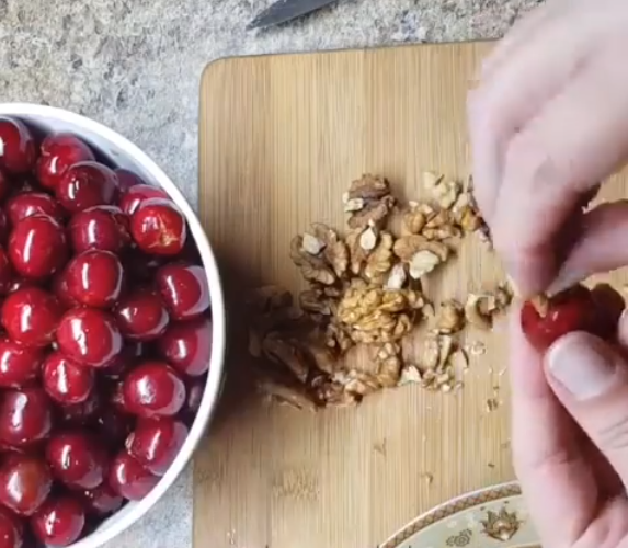 Потім заповнити черешню, ні не кісточками, а подрібненими горіхами.