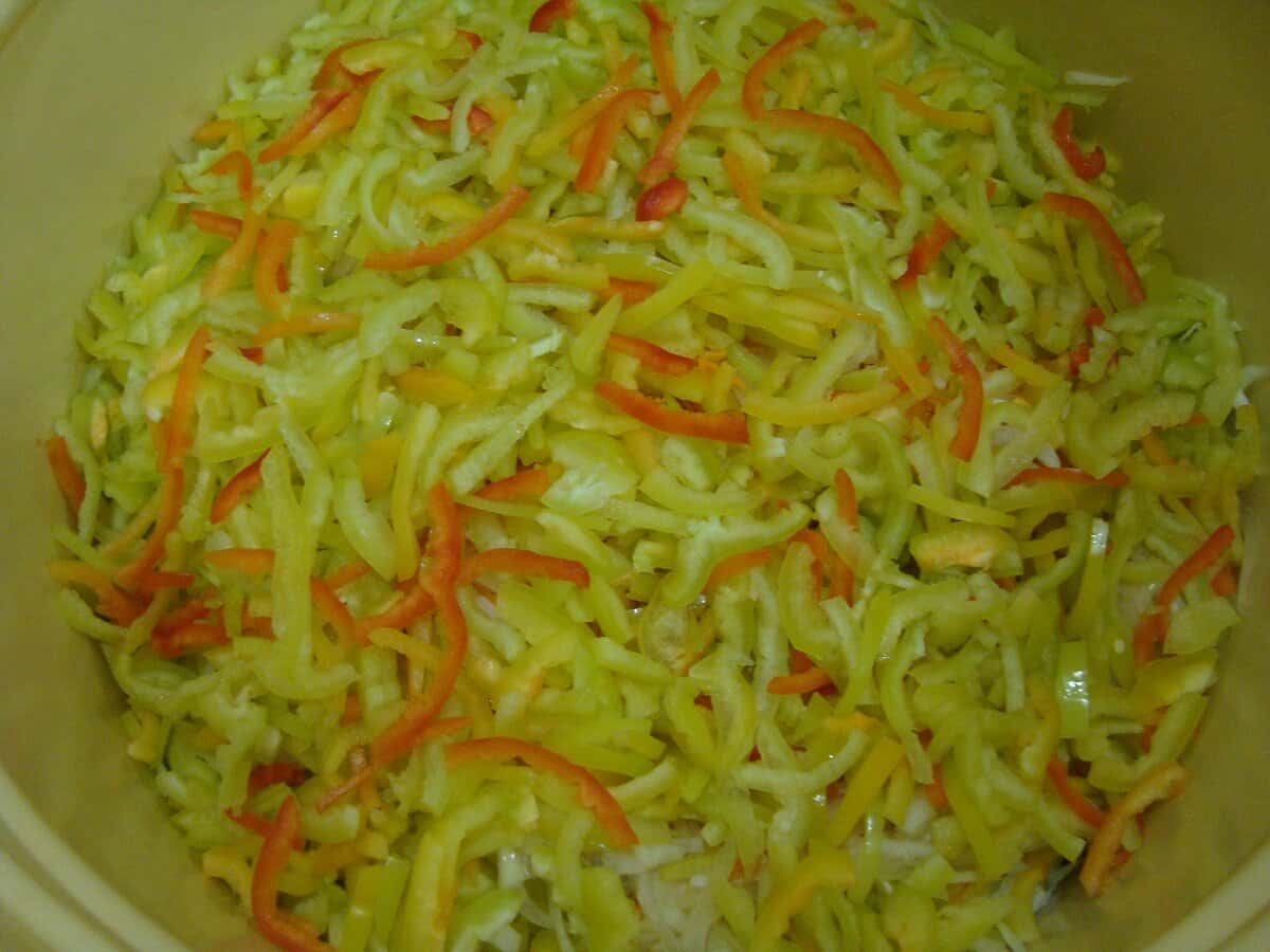 Заливаю маринадом овочі і ретельно перемішую. Даю настоятися салату 1 годину.
