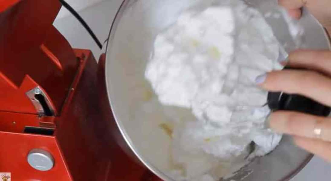 Далі, додаю цукрову пудру та збиваю до стійких піків.