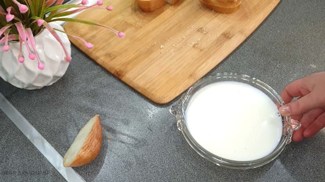 Кожну скибочку батона вмочу в молоці, але не залишаю полежати, інакше розмокне все.