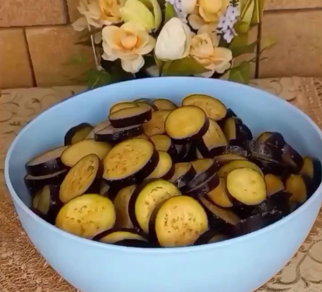 Після закінчення часу баклажани злегка відіжміть і обсушіть паперовими серветками після обсмажте на сковороді з двох сторін до золотистого кольору.