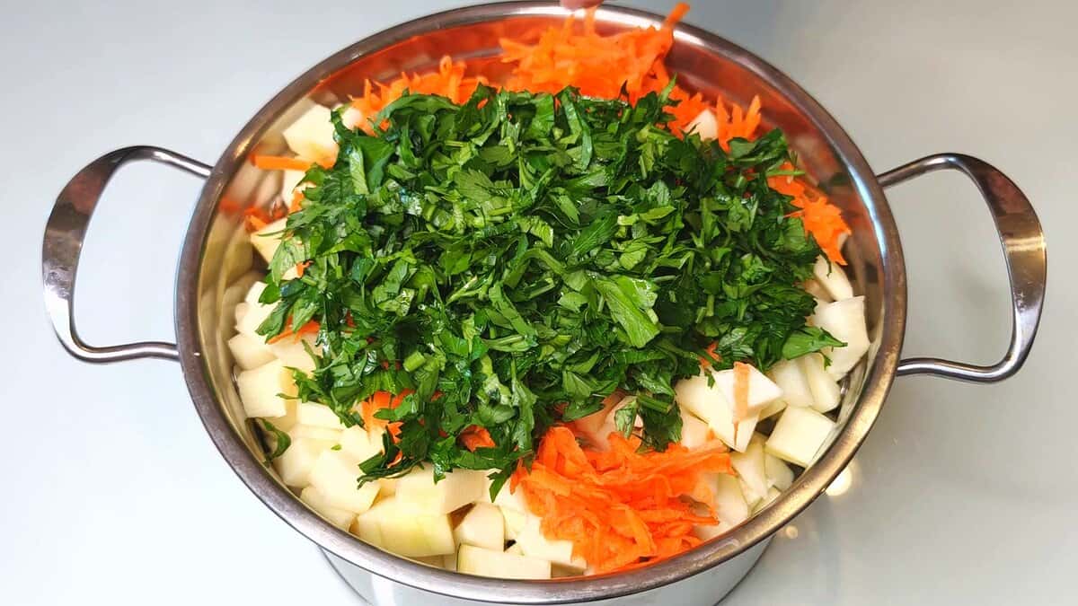 3. Слідом додаю подрібнену зелень петрушки ( зелені використовую багато, так смачніше ).