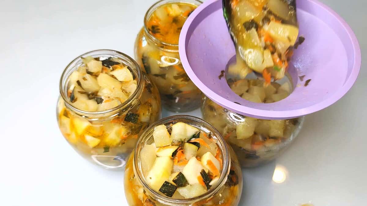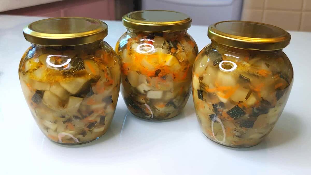 Такі кабачки взимку просто вмить відлітають! Ця заготівля виручить особливо тих, хто дотримується посту. Відварив картопельки, відкрив баночку … і можна насолоджуватися смачним пісним обідом. Люблю прості рецепти заготовок – “без проблем”. Кабачки за цим рецептом на зиму заготовлюю у великій кількості.
