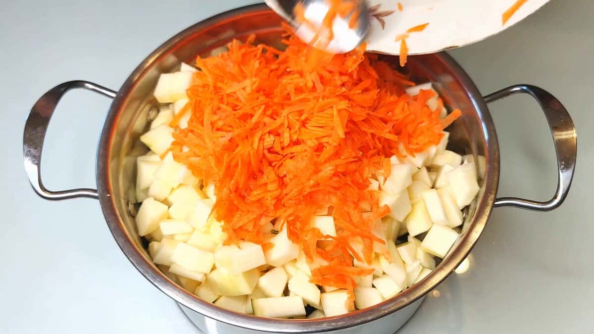 2. Потім додаю моркву, натерту на великій терці.