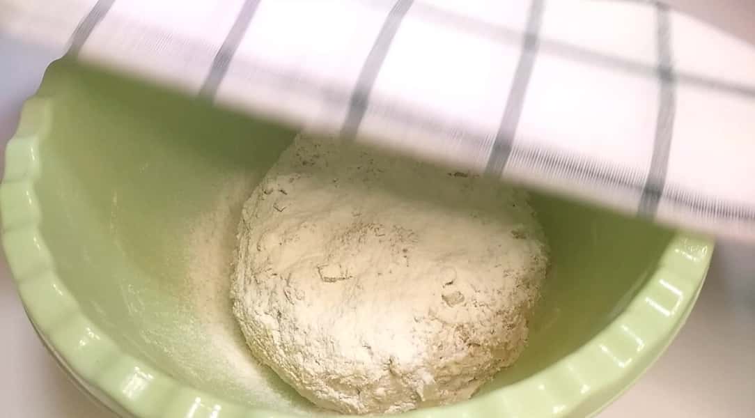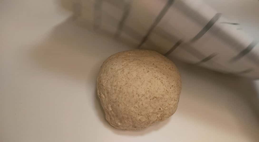 Тісто округляємо, посипаємо борошном, накриваємо та ставимо підходити у тепле місце на 1,5 години.