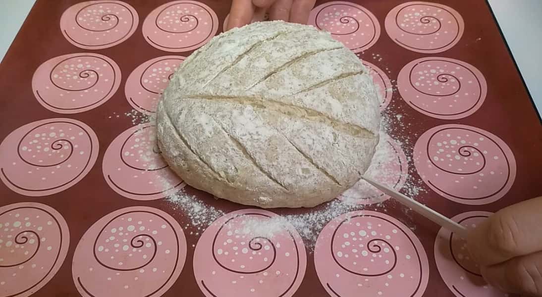 Гострим ножем робимо неглибокі надрізи, накриваємо хліб рушником і ставимо на вистоювання у тепле місце на 30-40 хвилин.