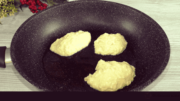 У сковороду наливаємо зовсім небагато олії і відправляємо тісто на сковороду.