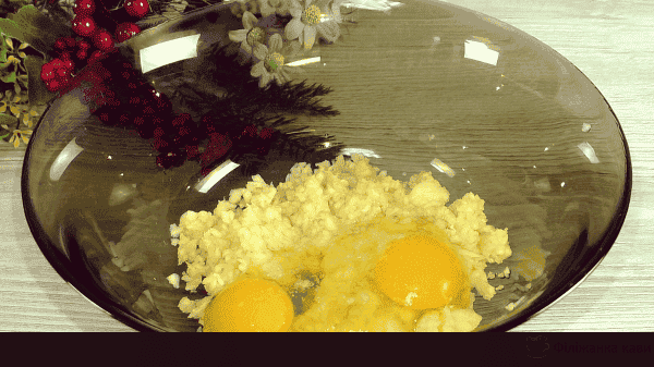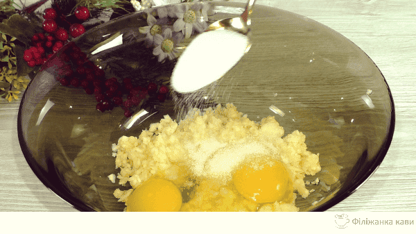 Додаємо яйця і дрібку солі.