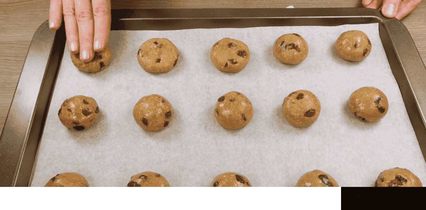 - Усі заготовки викладаю на деко, залишаю між ними відстань. Кожну кульку трохи притискаю руками, надаю їй більш плоску форму.