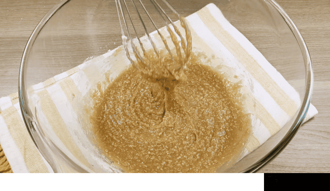 - Підготовлене борошно висипаю частинами, спочатку замішую тісто вінчиком.
