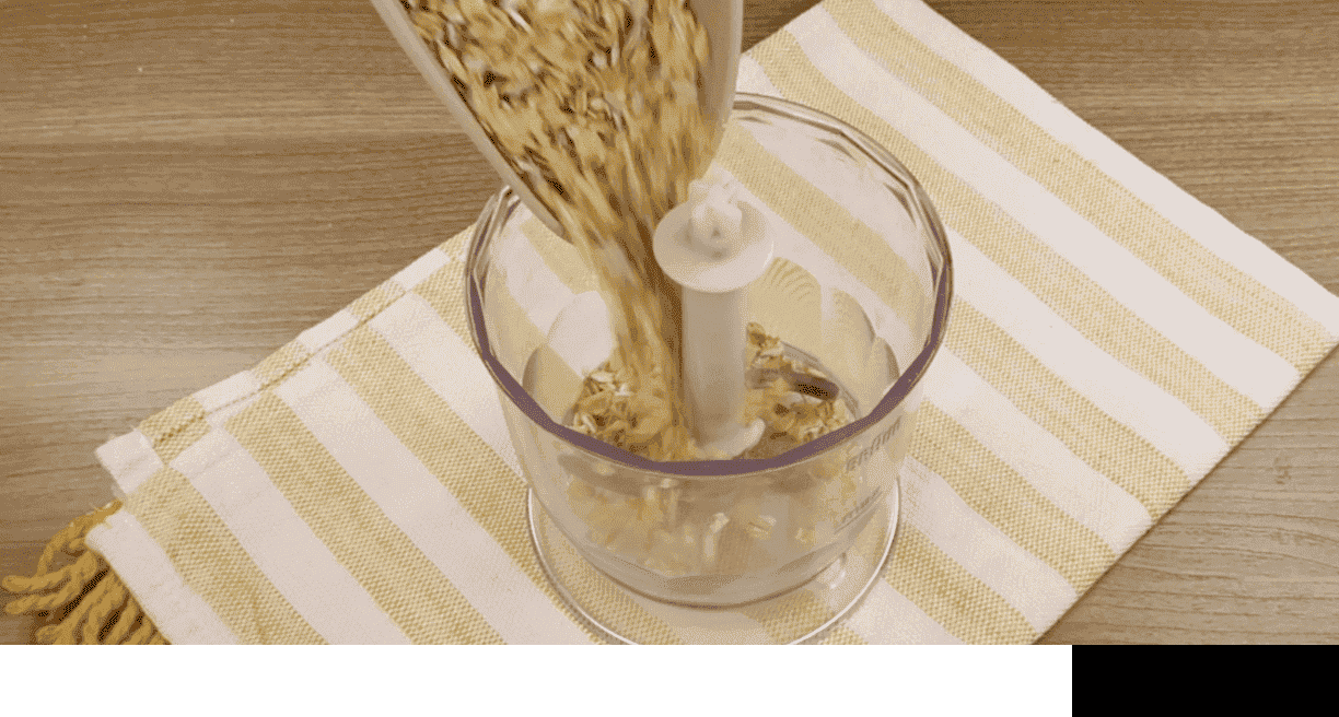 - Подрібнюю вівсяні пластівці. Вони не швидкого приготування, а звичайнісінькі.