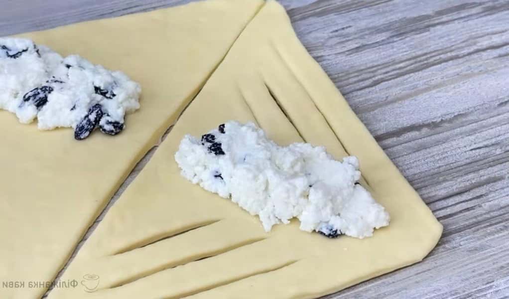 У серединки кладемо начинку і робимо надрізи.