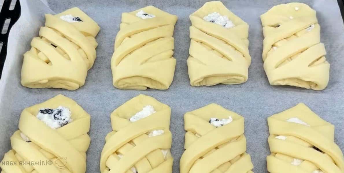 Загортаємо кути і кладемо на деко з папером для випічки. Ми залишаємо накритими на 15 хв.