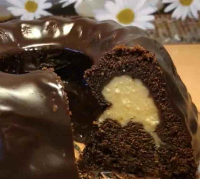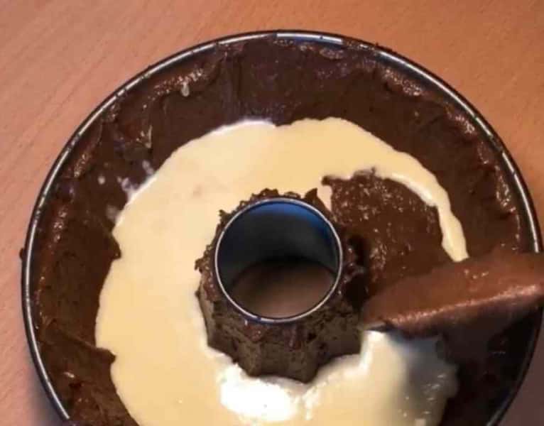 10. Викласти начинку в середину кексу, потім залити шоколадним тістом, що залишилося.
