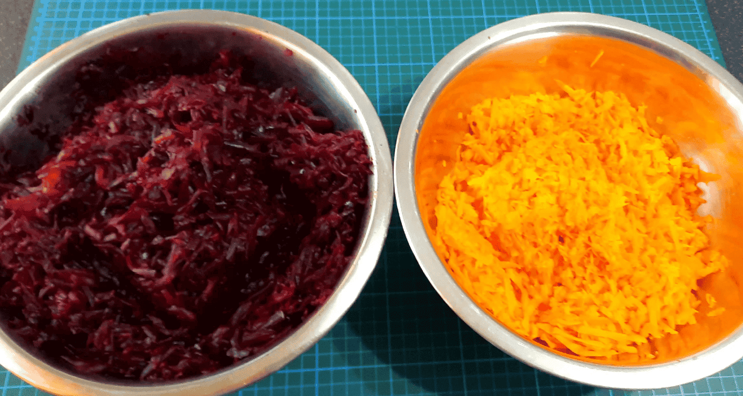 Після того, як овочі трохи охолонули, очистити і натерти на тертці.
