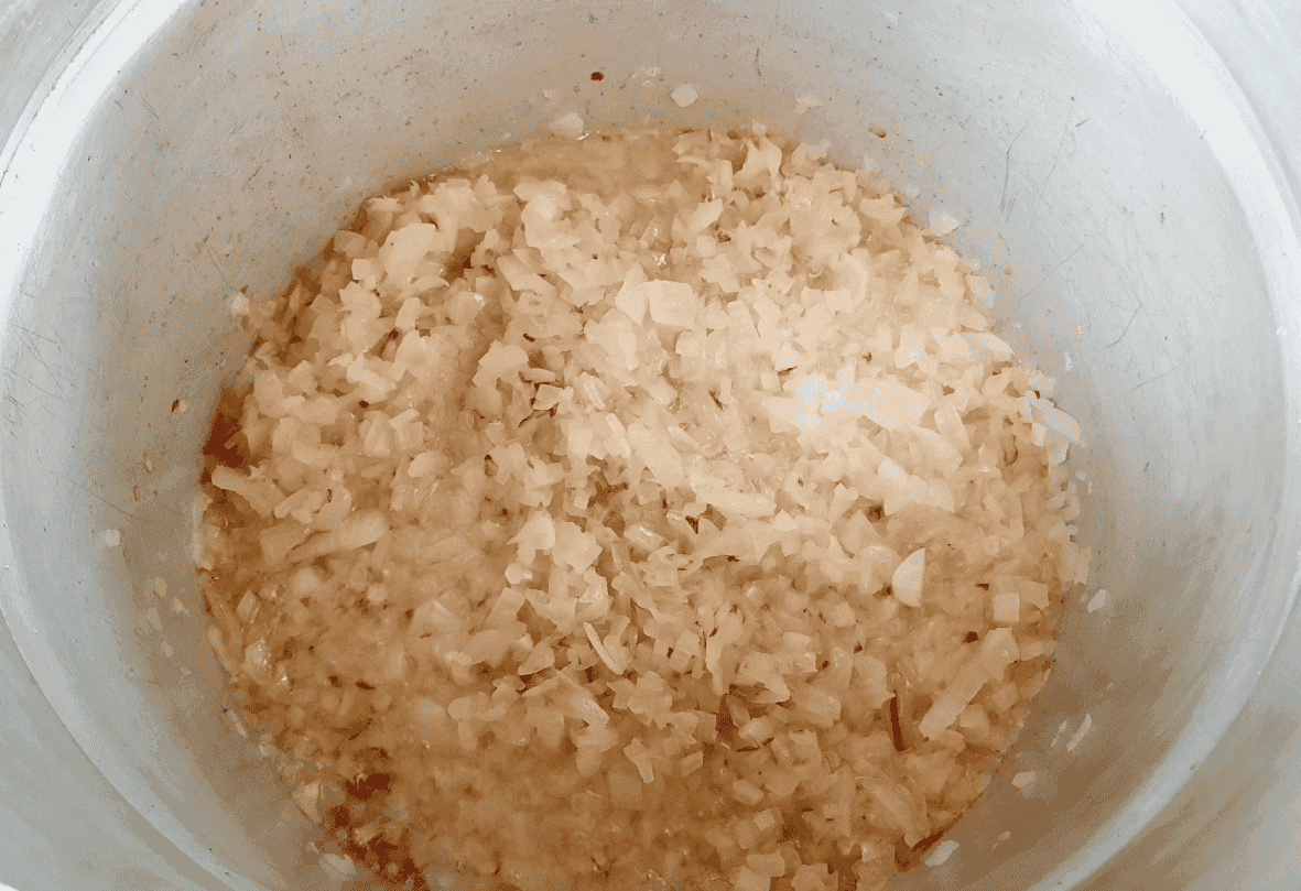 У посуд наливаю олію і обсмажую цибулю до золотистого кольору.
