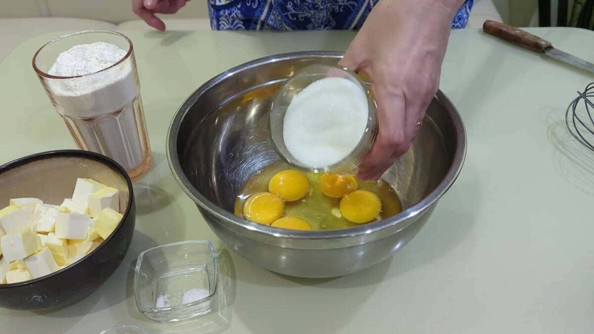 Насамперед збиваємо яйця і цукор. Не потрібно використовувати міксер, просто збийте вінчиком 2-3 хвилини.