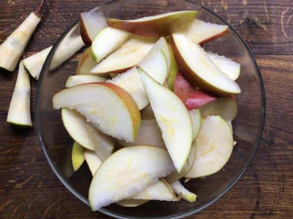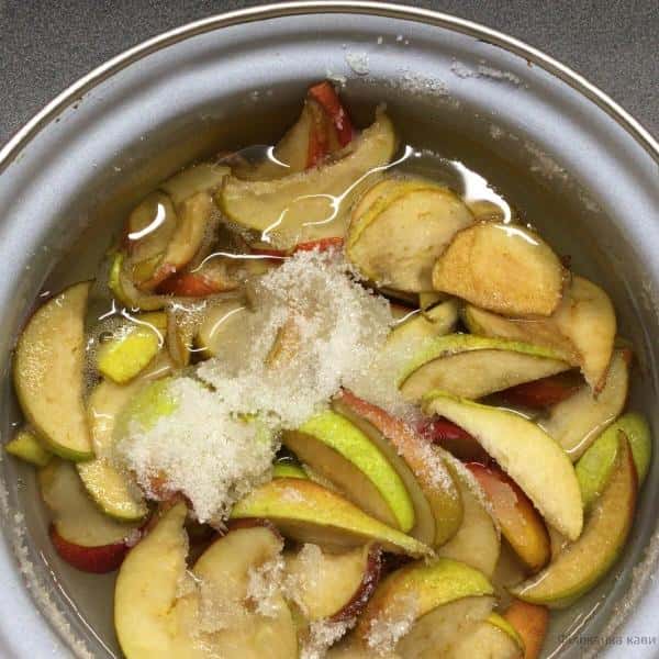 Груші треба більше за часом, щоб з’явився сік. Я залишала на ніч. Ось результат, як добре утворився сік, і груші стали трохи м’якше.