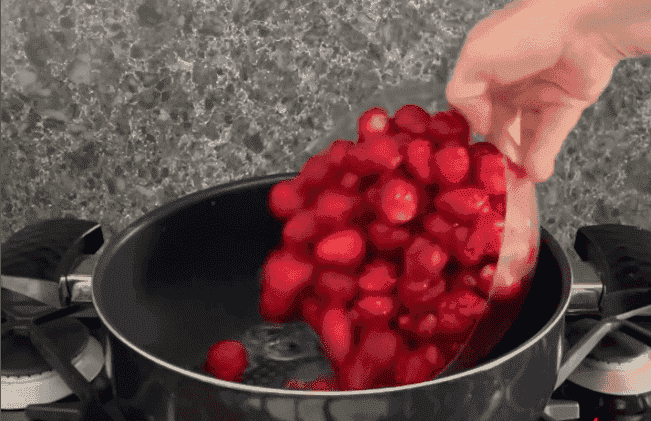 і викладаємо полуницю, смажимо 8 хвилин.
