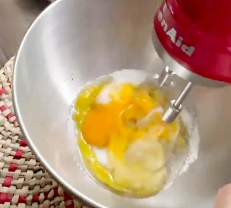 - В окремій мисці збиваємо жовтки, яйце, цукор та ванільний цукор.