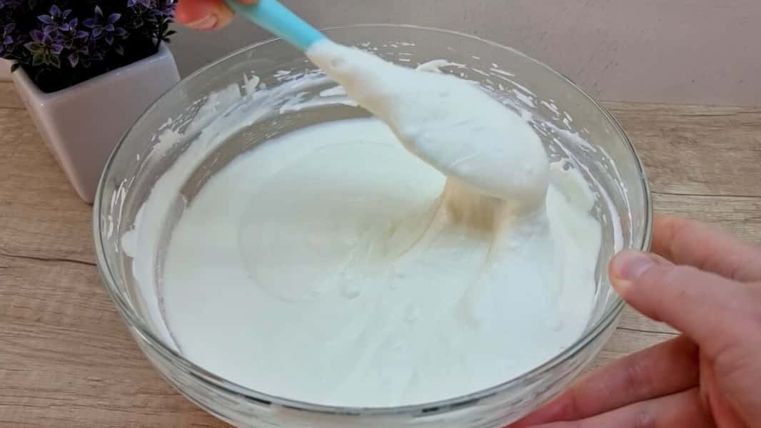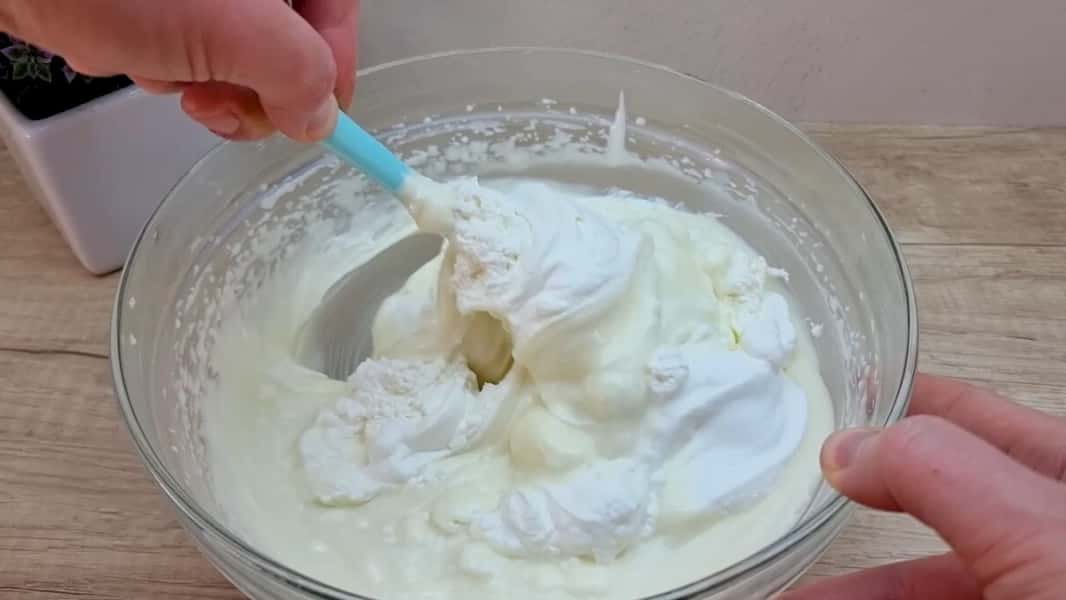 Акуратно вмішати збиті вершки в основний крем до отримання однорідної маси, консистенція якої схожа на досить густу сметану