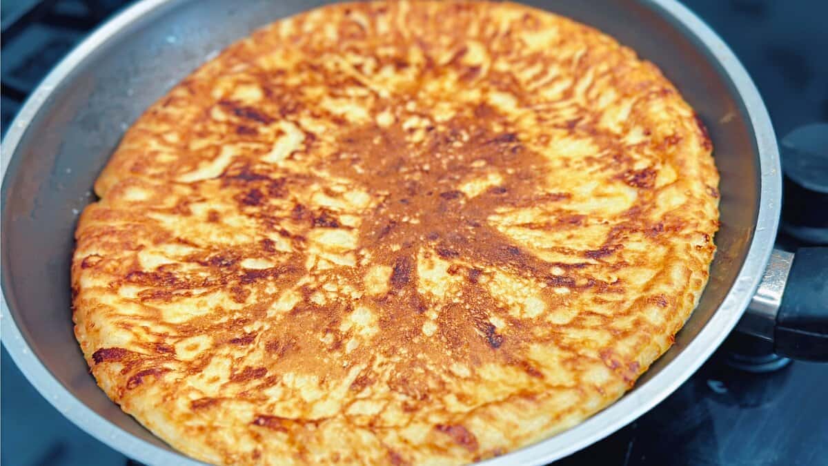 Коли помітите, що коржик добре схопилася зверху, переверніть і обсмажте його з іншого боку. На це йде зазвичай 2 хвилини.