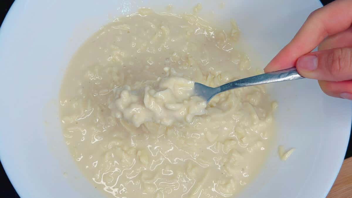 Виходить досить рідка по консистенції маса. Сюди потрібно натерти 200 грамів сиру сулугуні.