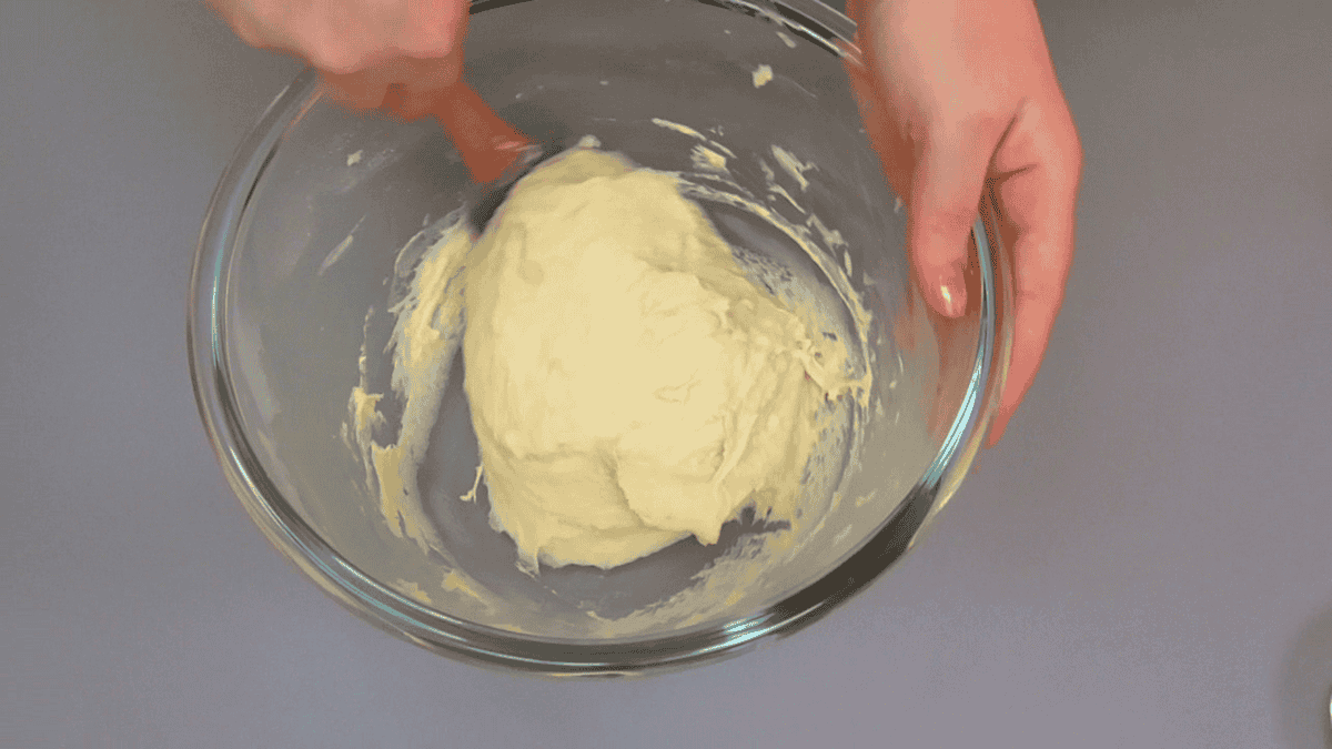 ✅ Тісто має вийти дуже м’яким. Руками його замішувати незручно, тому я вимішую його лопаткою, але дуже ретельно. У підсумку воно виходить дуже м’яким, але і еластичним і легко відстає від рук.