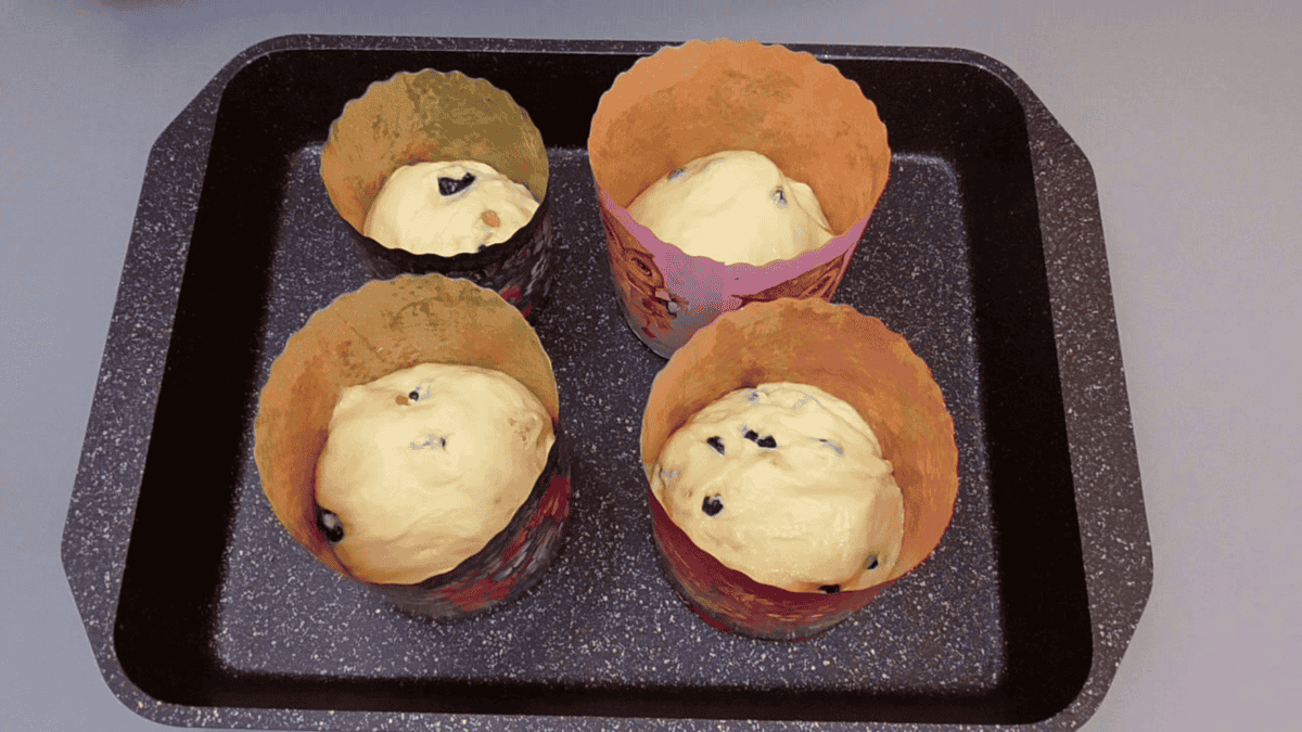 ✅ Коли тісто піднялося, приступаємо до формування. Для цього я знову змащую руки олією і поділяю тісто на порції прямо руками. Розкладаю порції по формочках так, щоб вони були заповнені тільки наполовину, адже при випічці пасочки добре піднімуться.